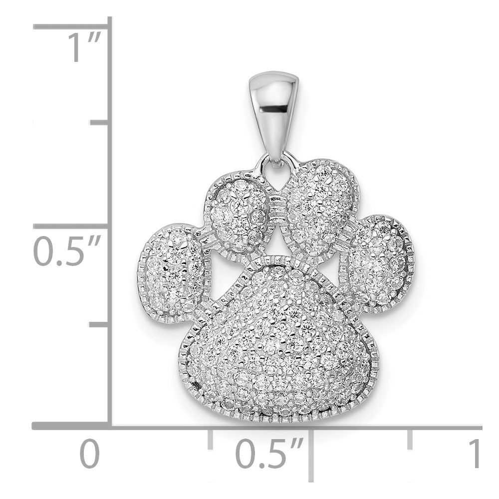 Sterling Silver Rhodium-plated Polished CZ Paw Print Pendant