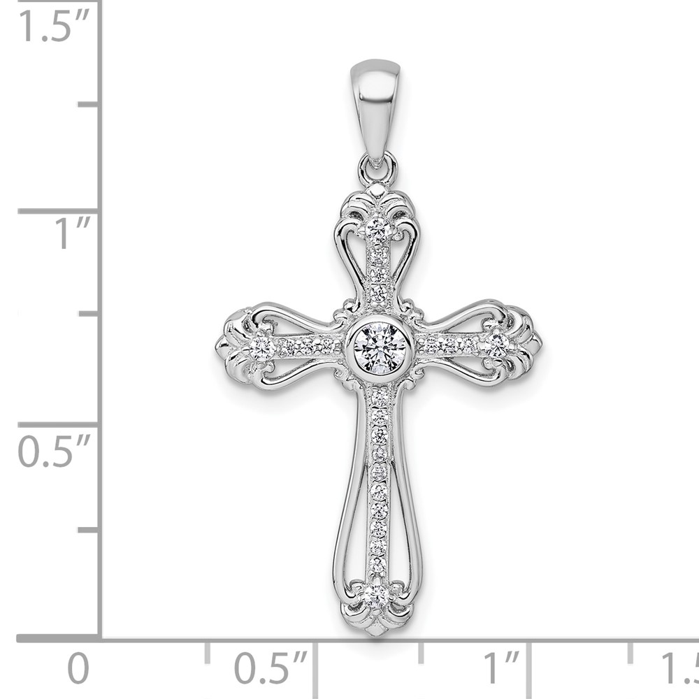 Sterling Silver Rhodium-plated Polished Fancy CZ Cross Pendant