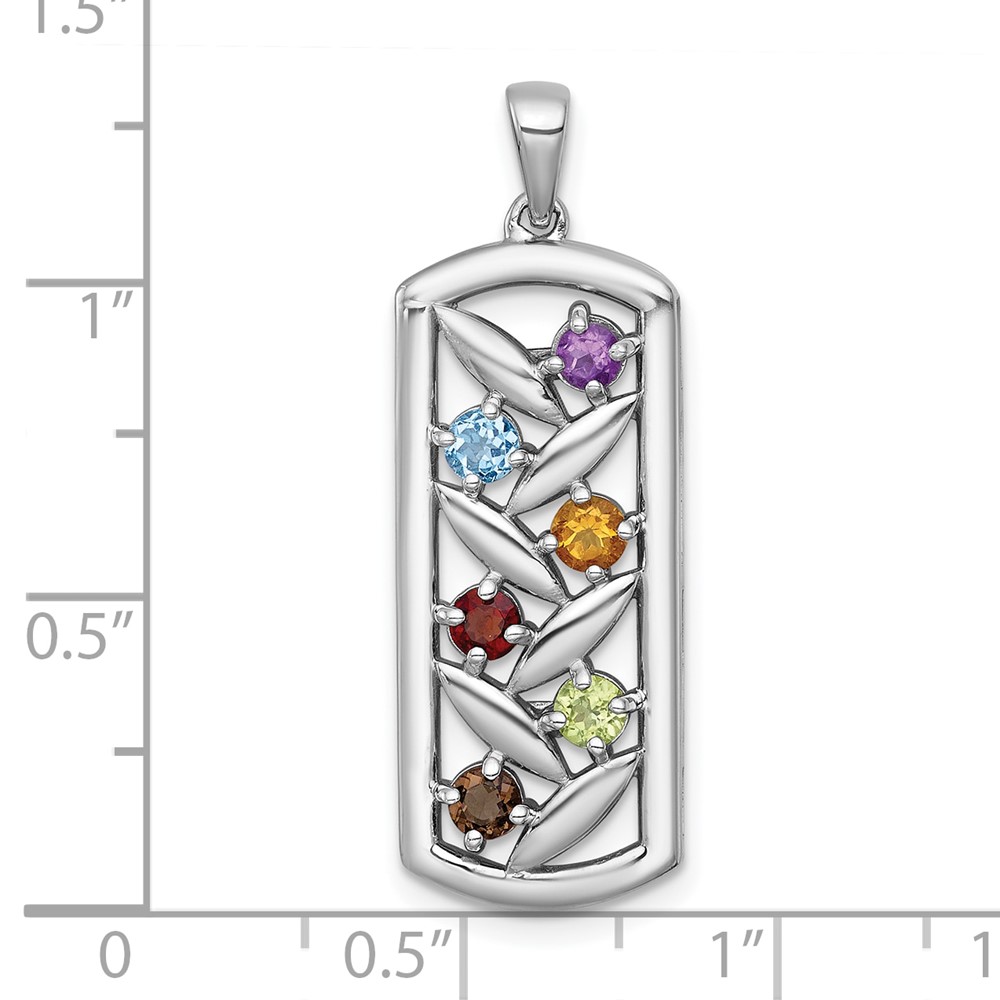 Sterling Silver Rhodium-plated Polished Fancy Oblong Multi Gemstone Pendant