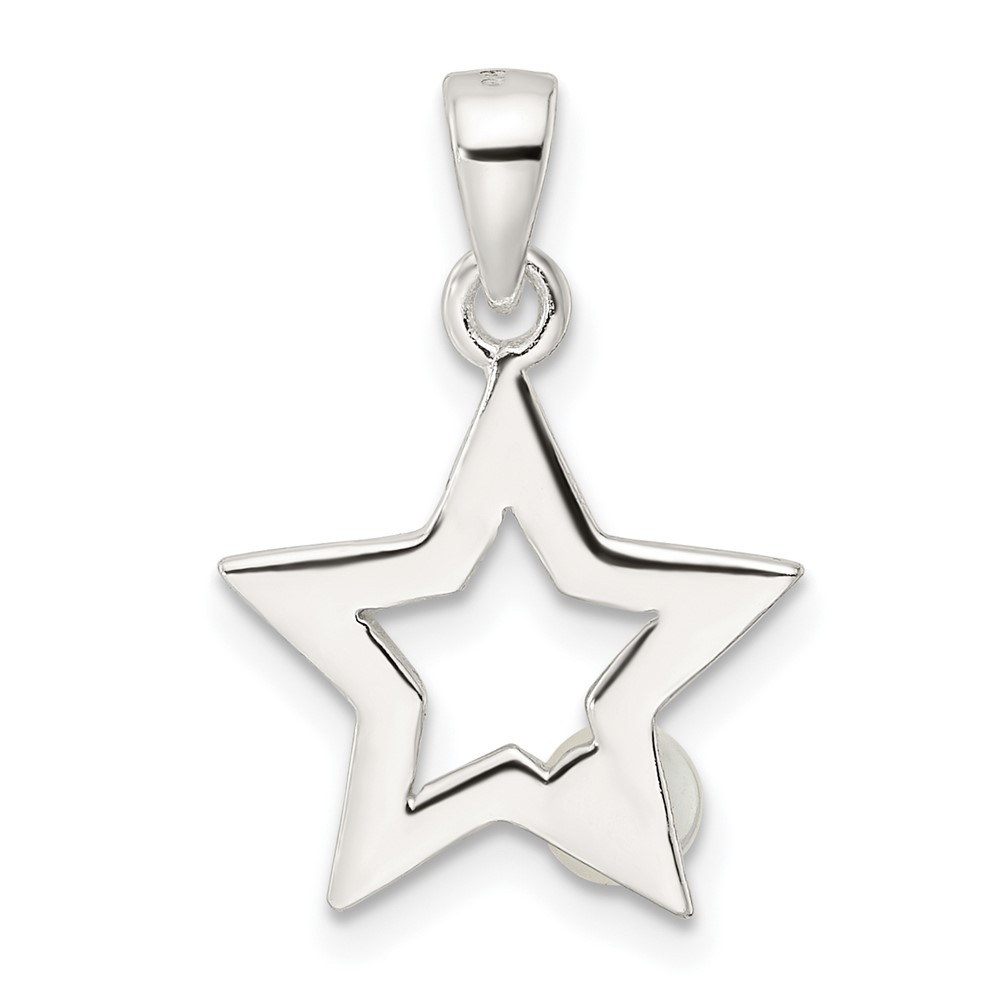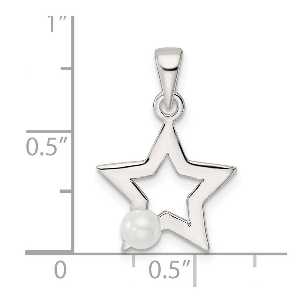 Sterling Silver Rhodium-plated Polished Imitation Pearl Star Pendant
