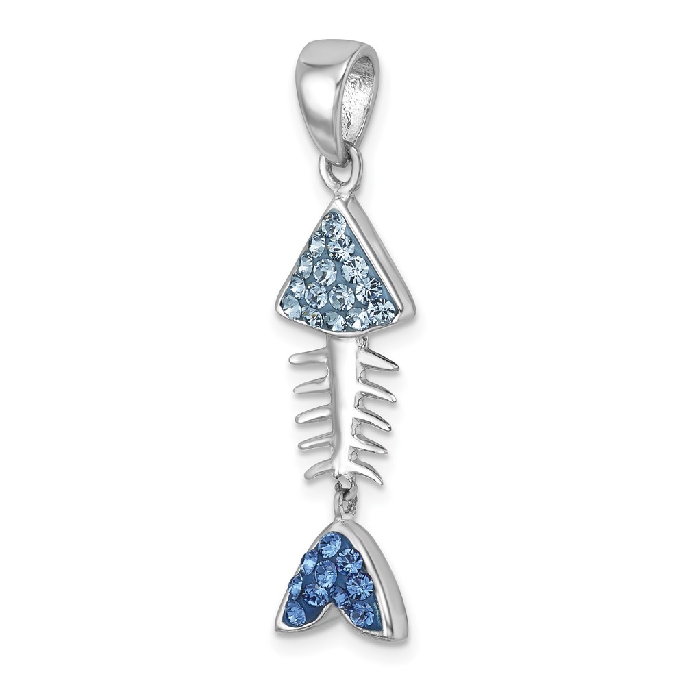 Sterling Silver Rhodium-plated Polished Moveable Blue Crystal Bonefish Pendant