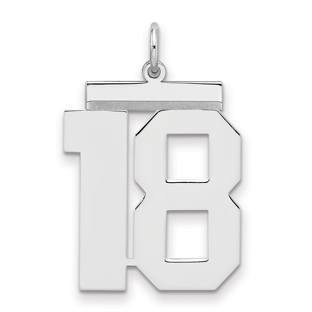 Sterling Silver/Rhodium-plated Polished Number 18 Charm