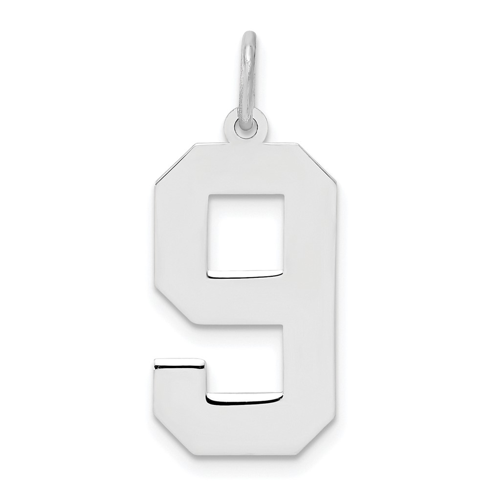 Sterling Silver/Rhodium-plated Polished Number 9 Charm