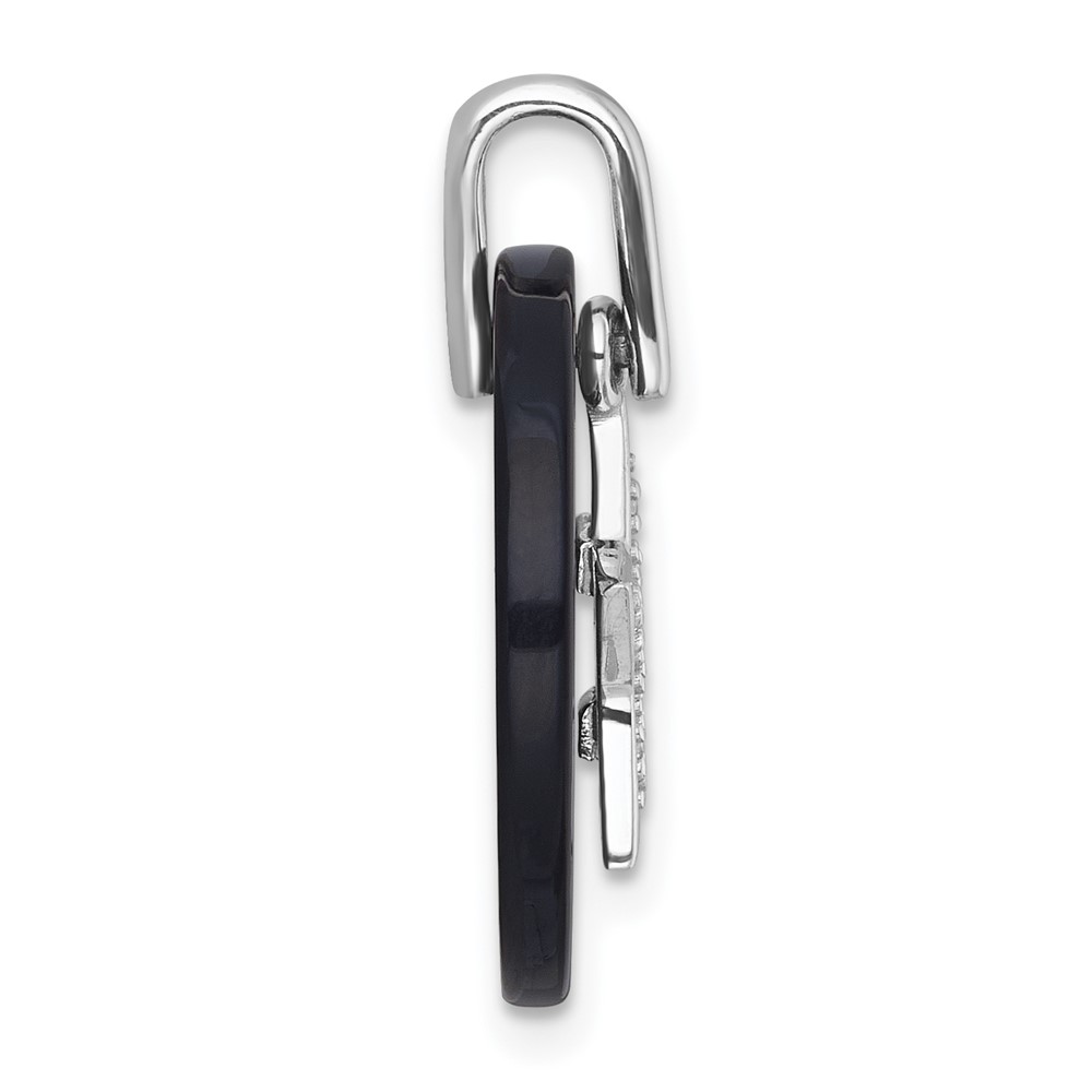 Sterling Silver Rhodium-plated Polished Onyx Circle with CZ Star Dangle Pendant