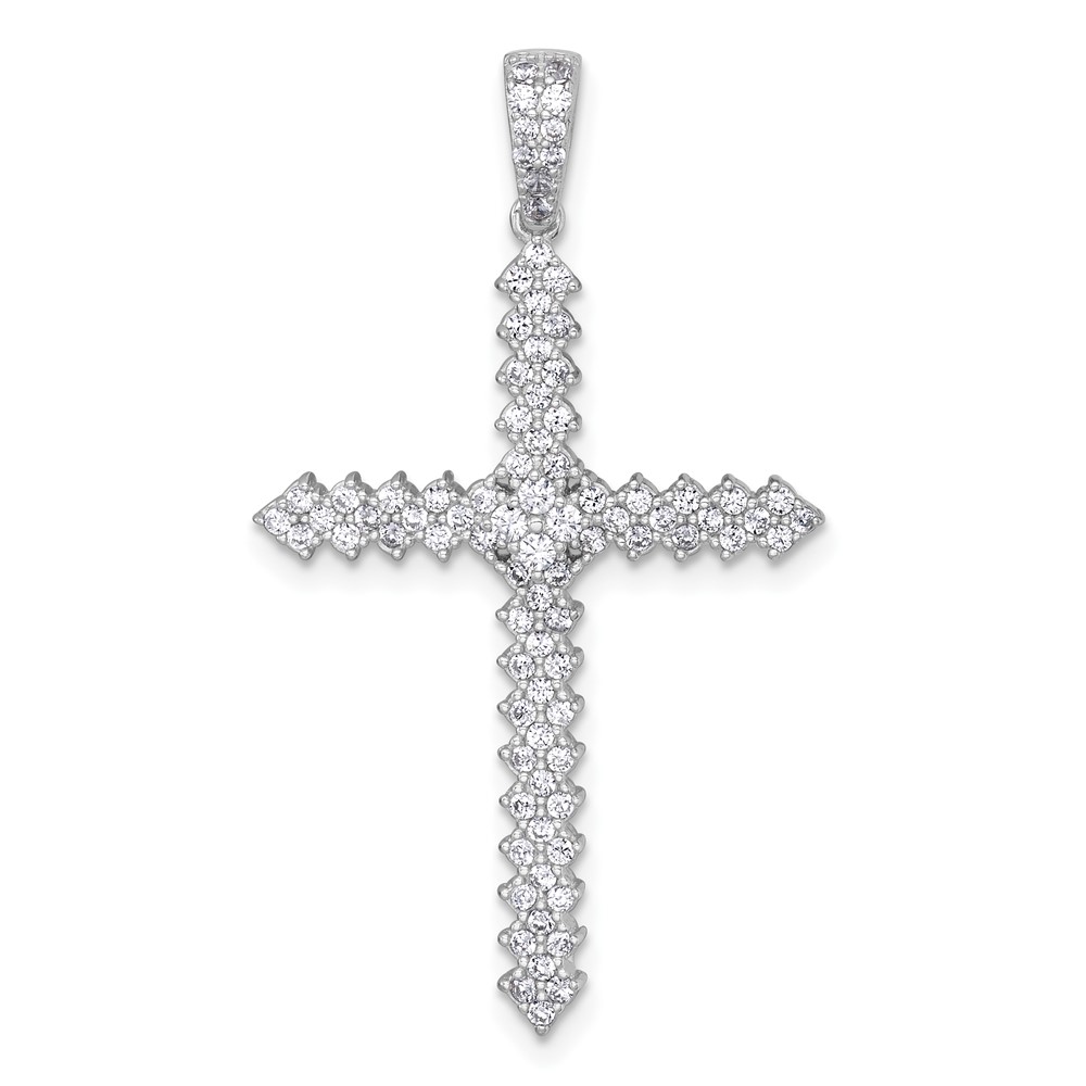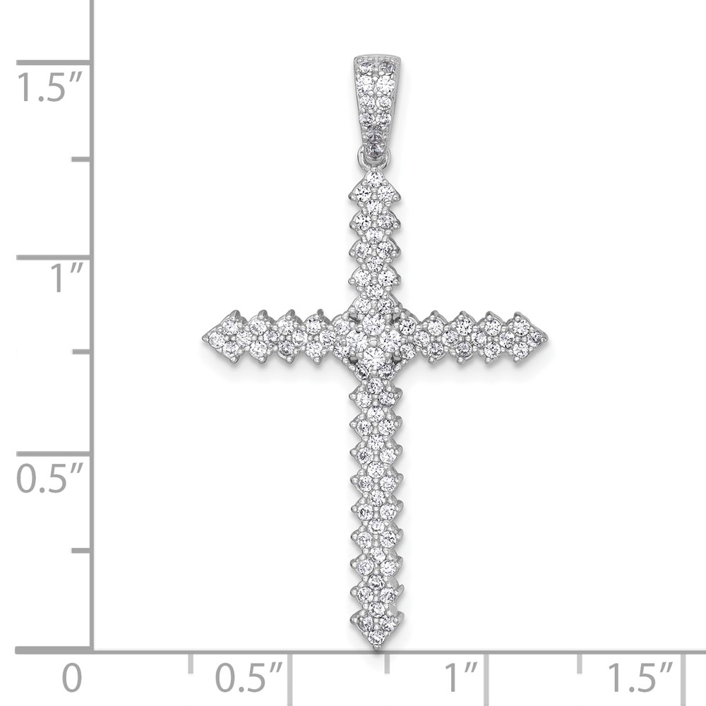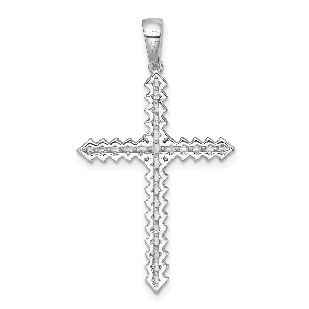 Sterling Silver Rhodium-plated Polished Pave CZ Latin Cross Pendant