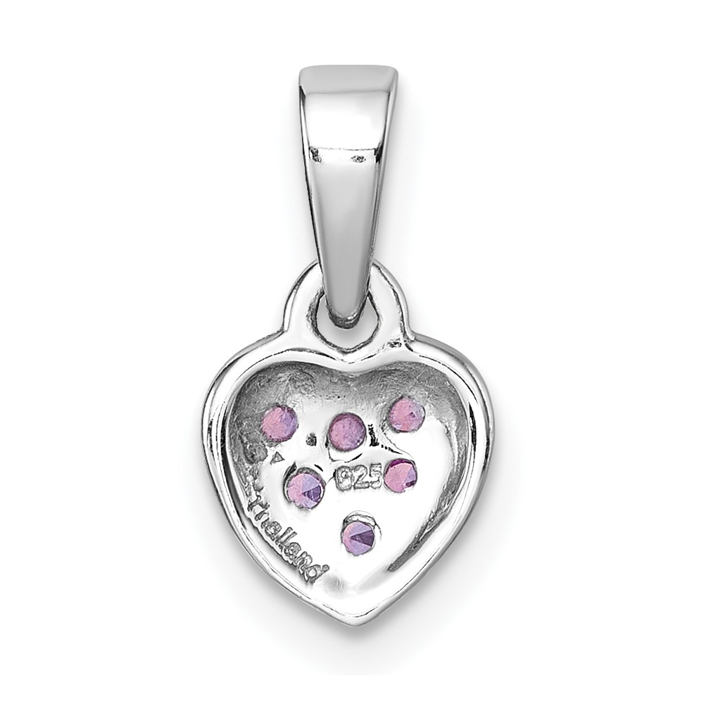 Sterling Silver Rhodium-plated Polished Pink CZ Heart Pendant