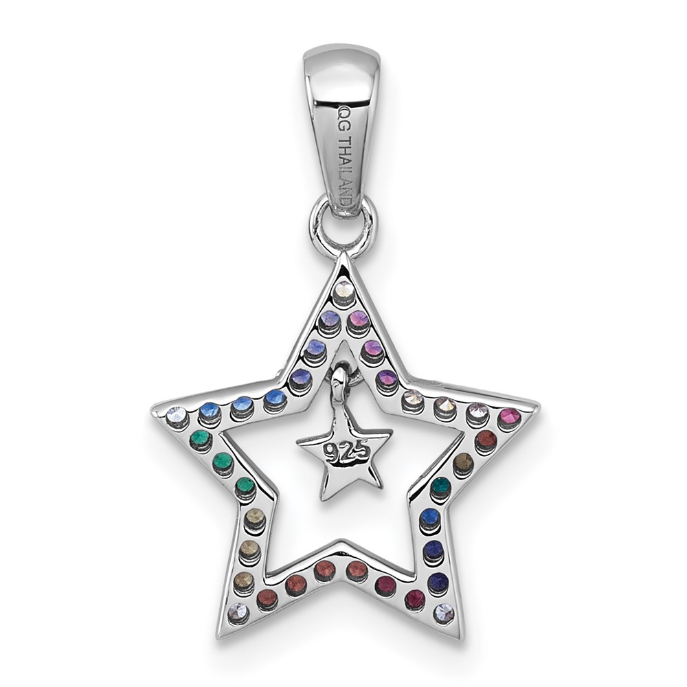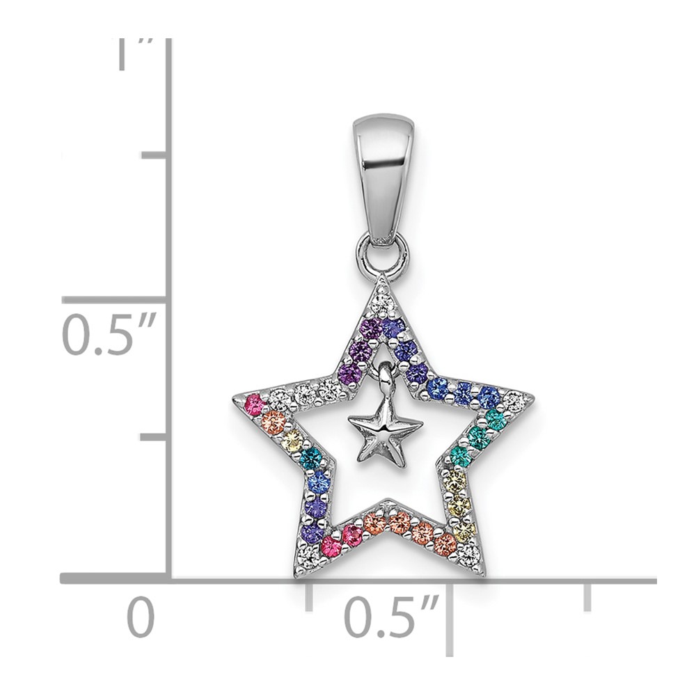 Sterling Silver Rhodium-plated Polished Rainbow Nano Crystals Star With Mini Star Dangle Childrens Pendant