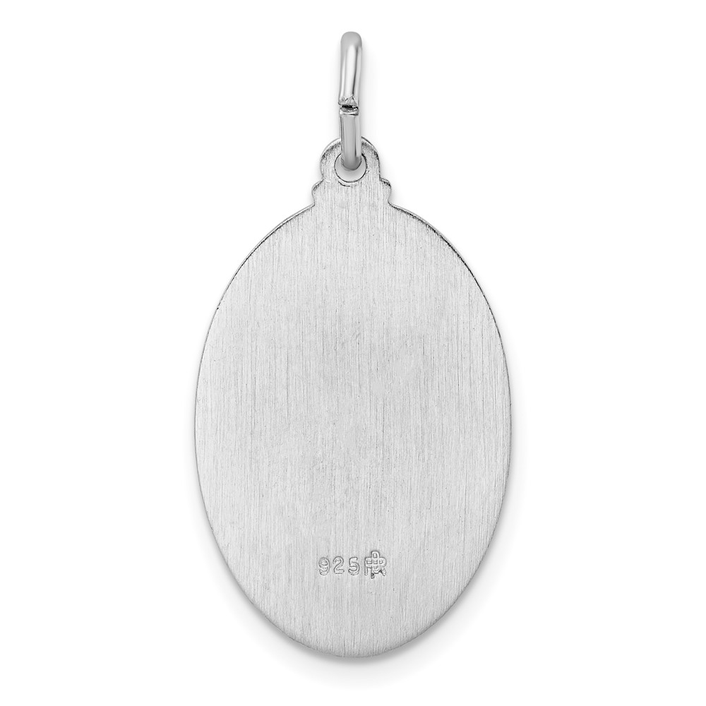 Sterling Silver Rhodium-plated Polished Solid Oval St Jude Pendant