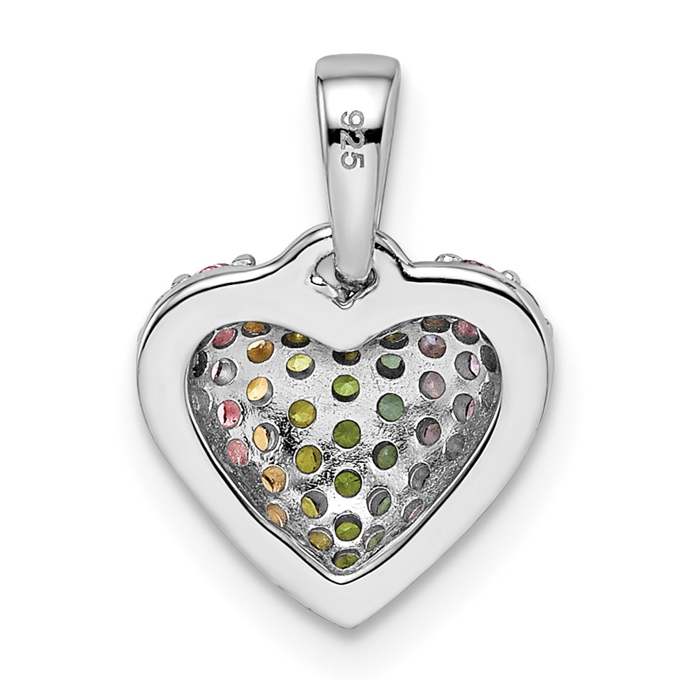 Sterling Silver Rhodium-plated Rainbow Nano Crystal Heart Pendant