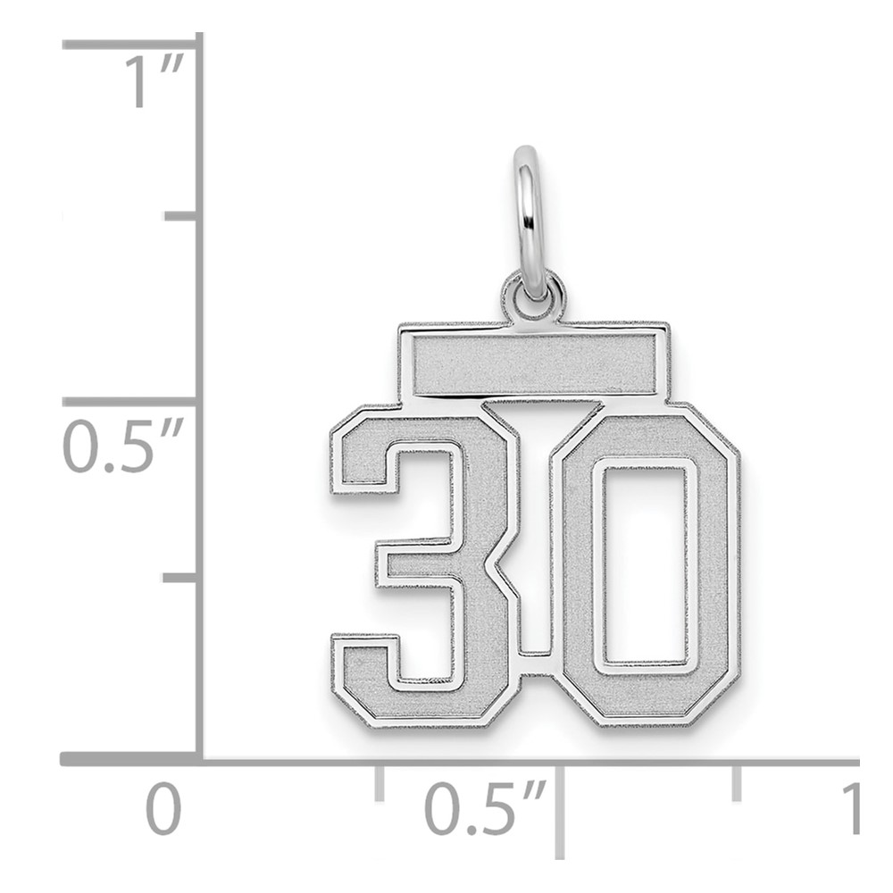 Sterling Silver/Rhodium-plated Satin Number 30 Charm