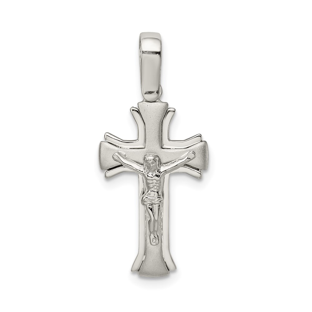 Sterling Silver Rhodium-plated Satin & Polished Crucifix Pendant