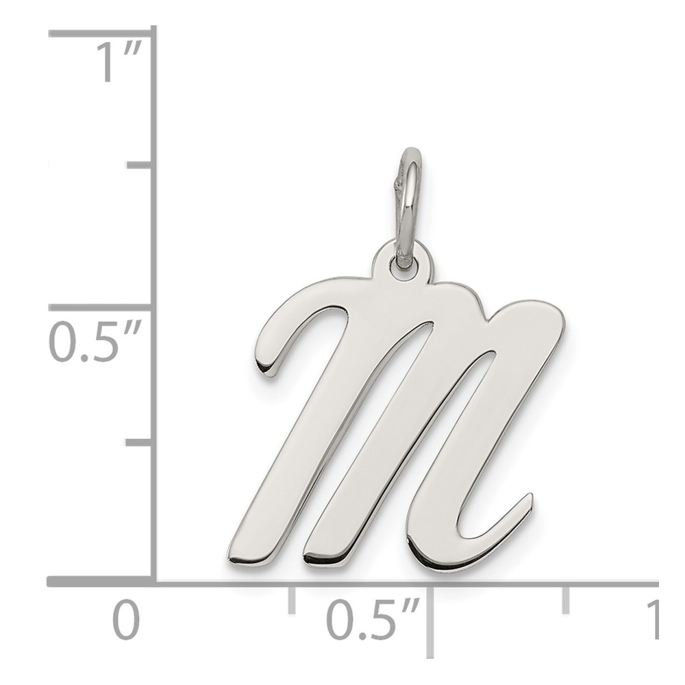 Sterling Silver Rhodium-plated Script Letter M Initial Charm