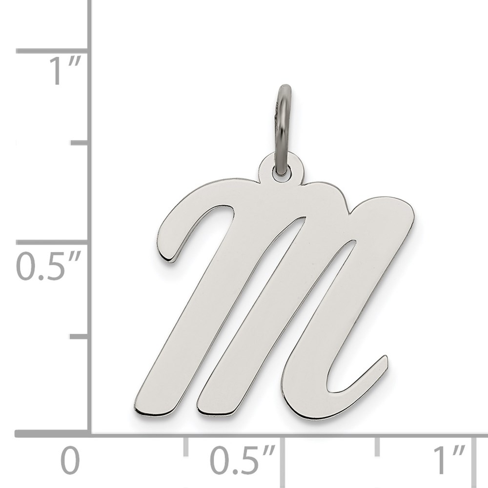 Sterling Silver Rhodium-plated Script Letter M Initial Charm