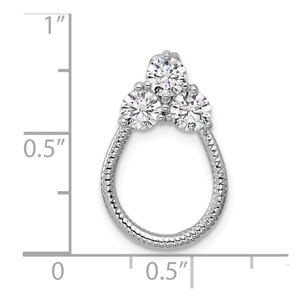 Sterling Silver Rhodium-plated Three CZ Textured Loop Chain Slide Pendant