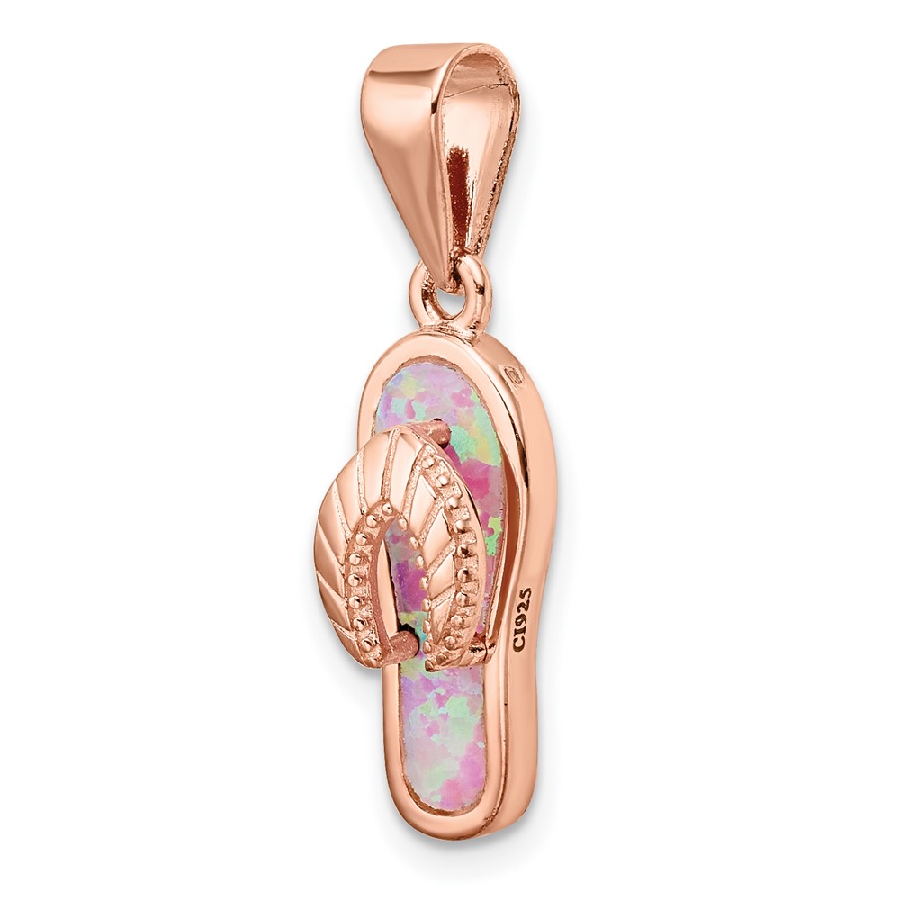 Sterling Silver Rose-tone Polished Pink Created Opal Inlay Flip Flop Pendan