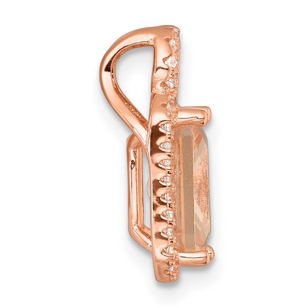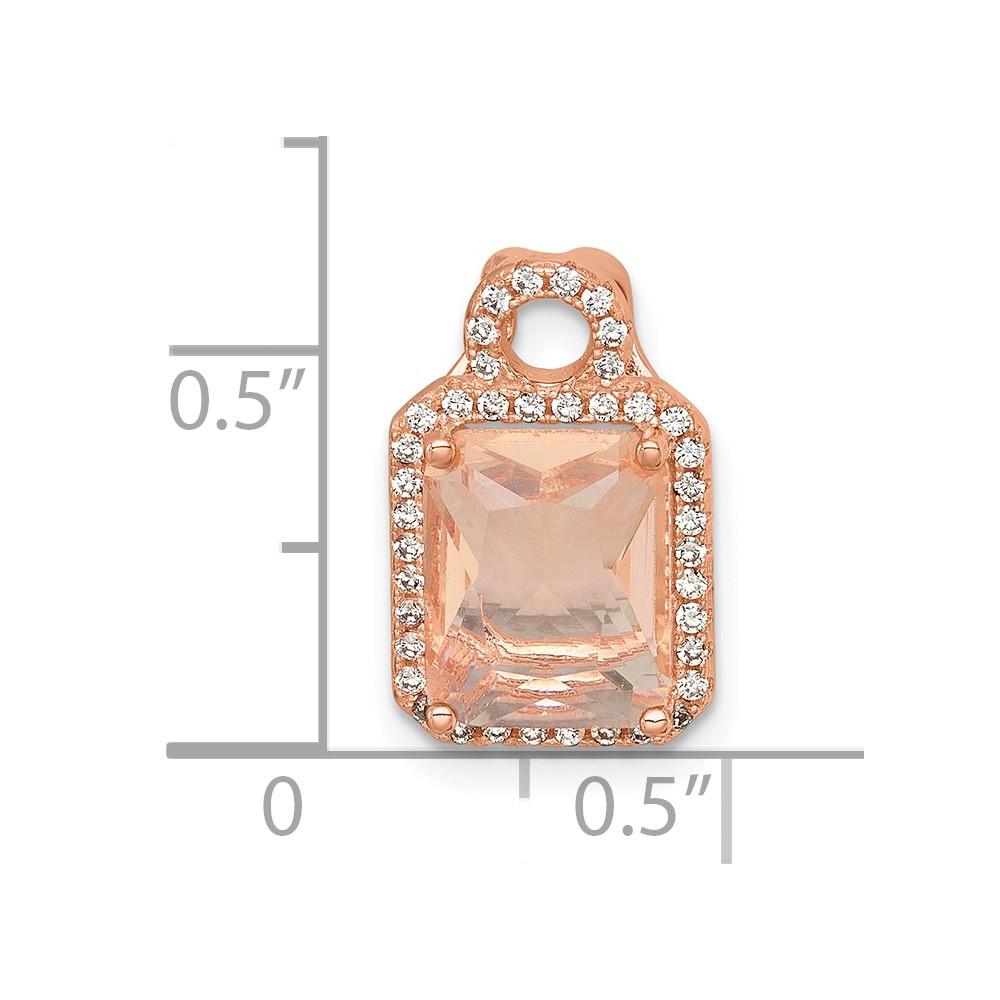 Sterling Silver Rose-tone Polished Pink Glass Stone and CZ Halo Chain Slide Pendant