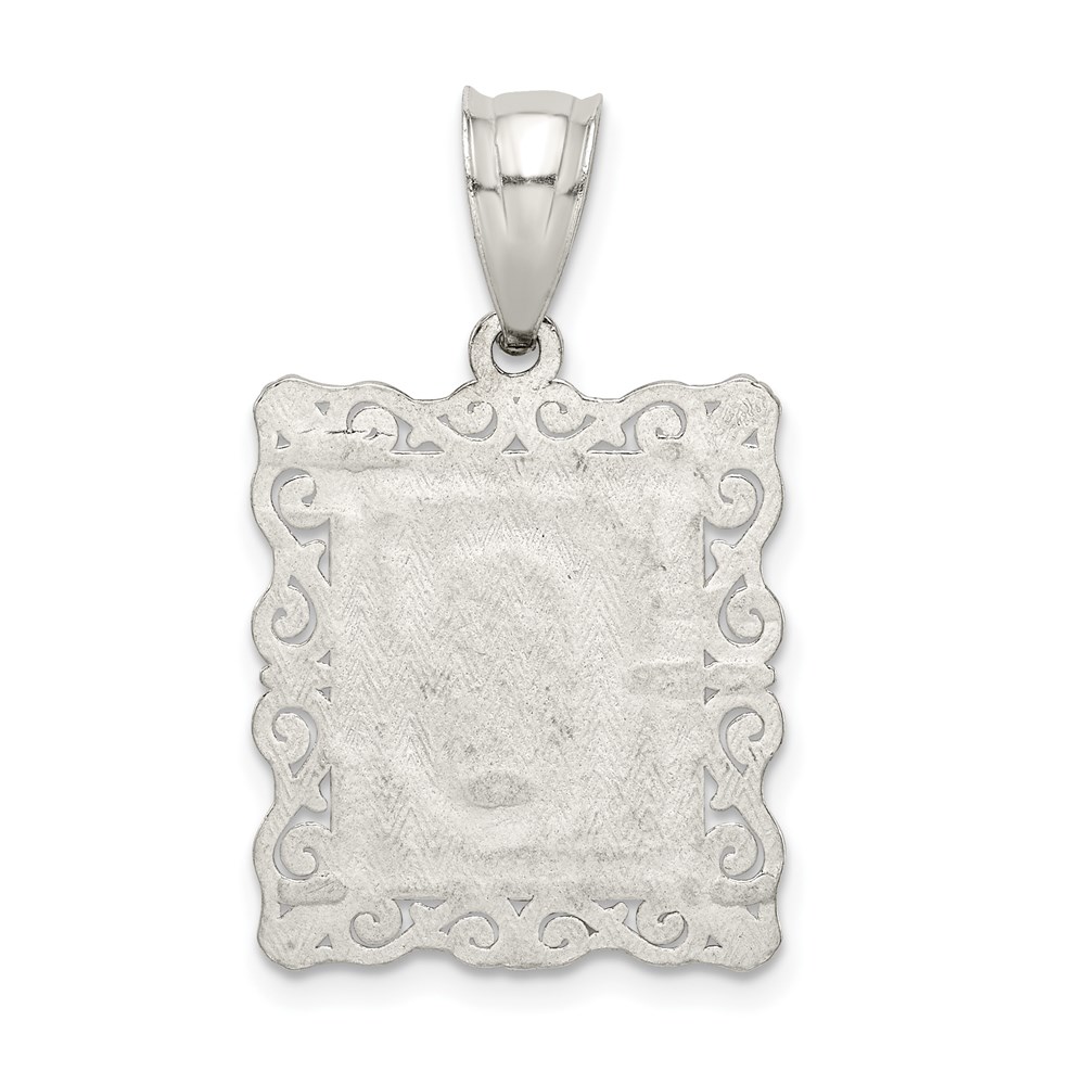 Sterling Silver Square Diamond-cut Letter C Initial Pendant