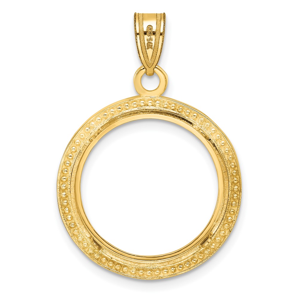 Wideband Distinguished Coin Jewelry 14k Polished and Beaded 18.0mm Prong Coin Bezel Pendant