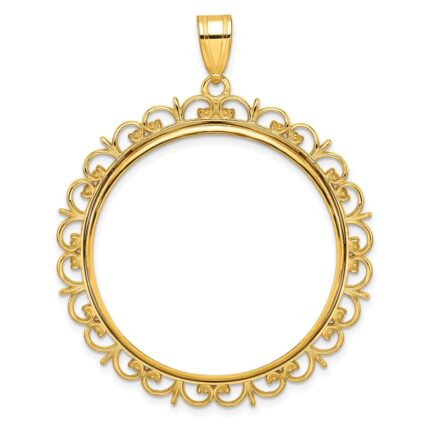 Wideband Distinguished Coin Jewelry 14k Polished Fancy 32.7mm Prong Coin Bezel Pendant