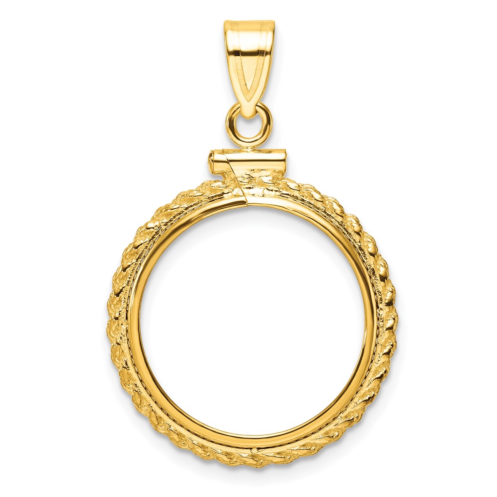 Wideband Distinguished Coin Jewelry 14k Polished Casted Rope 18.0mm x 1.35mm Screw Top Coin Bezel Pendant
