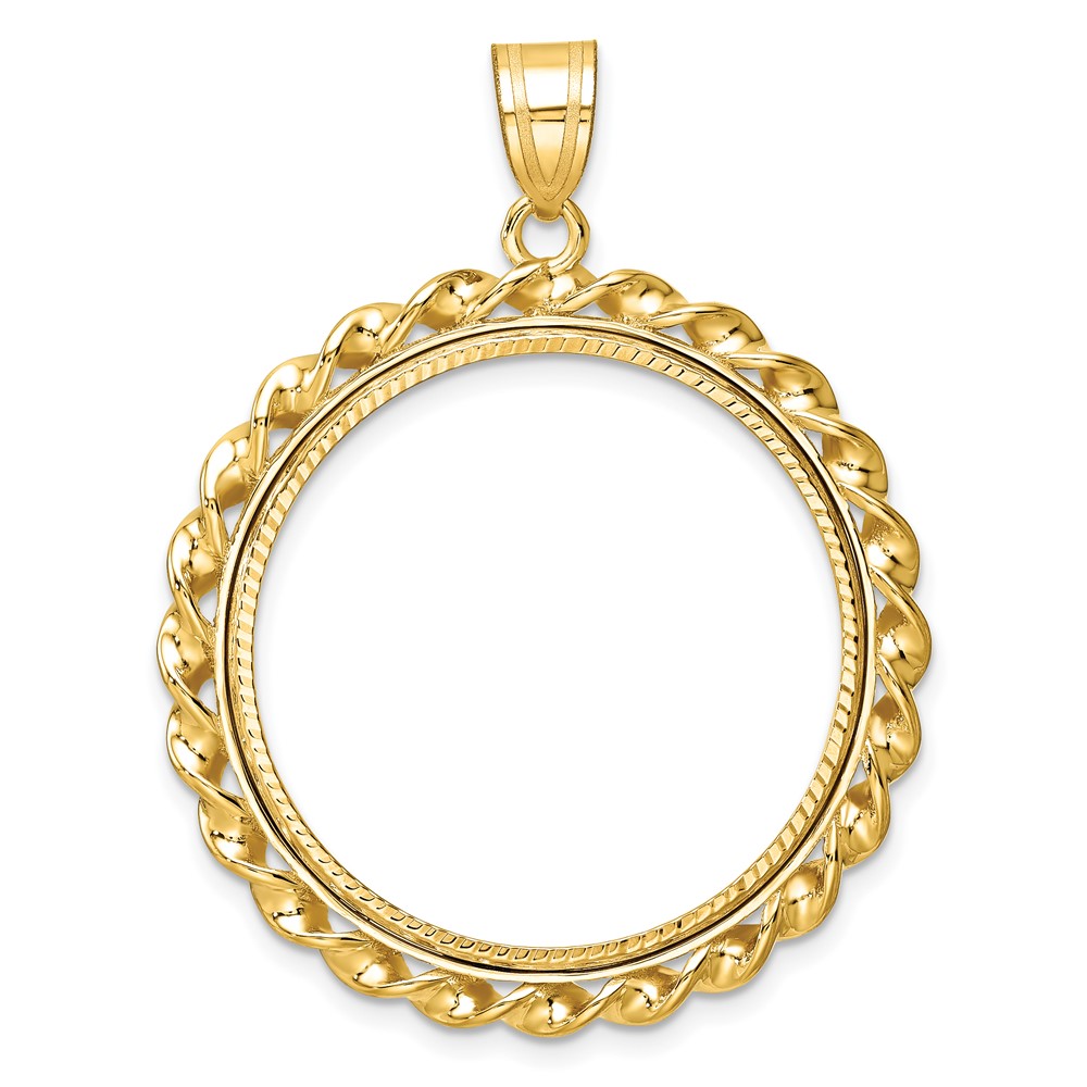 Wideband Distinguished Coin Jewelry 14k Polished Diamond-cut and Wide Twisted Wire 27.0mm Prong Coin Bezel Pendant
