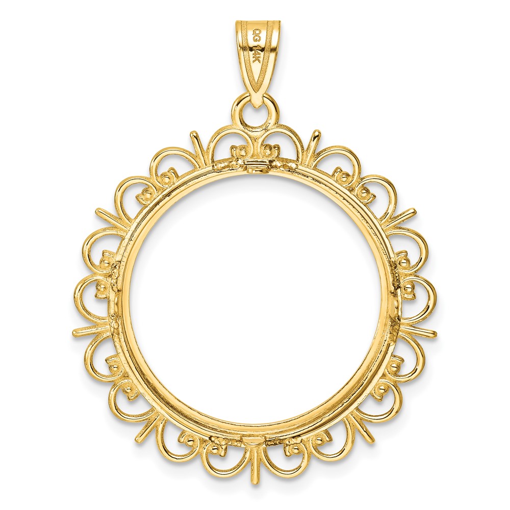 Wideband Distinguished Coin Jewelry 14k Polished Fancy 22.0mm Prong Coin Bezel Pendant