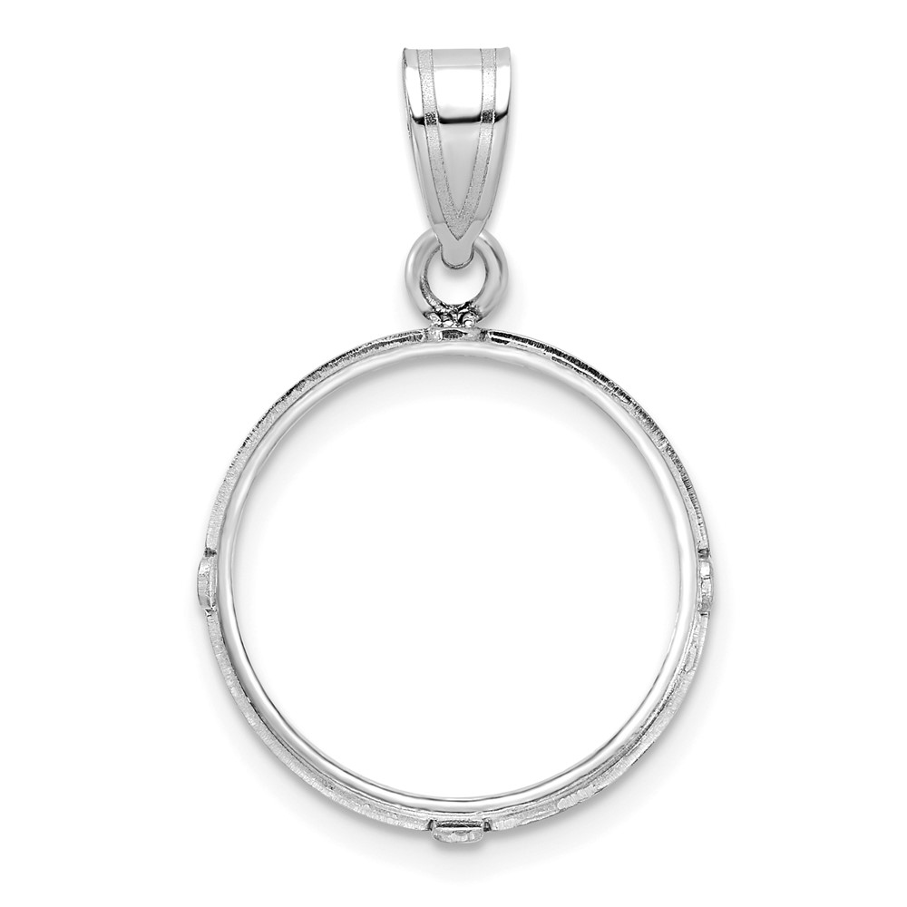 Wideband Distinguished Coin Jewelry 14k White Gold Polished and Diamond-cut 16.5mm Prong Coin Bezel Pendant